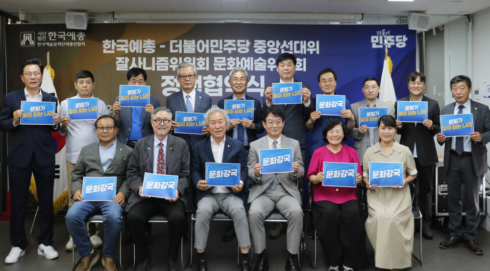 2025년 6월 2일, 대선을 하루 앞두고 더불어민주당 총괄선대위 잘사니즘 문화예술위원회와 (사)한국예술문화단체총연합회(이하 한국예총)가 정책협약을 체결했다. 협약식은 서울 양천구 목동에 위치한 대한민국예술인센터 20층 회의실에서 진행됐다.