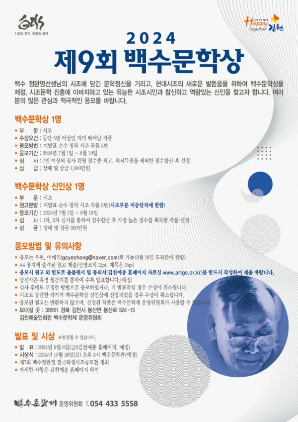 2024 제9회 백수문학상(백수문학신인상) 시상 공고