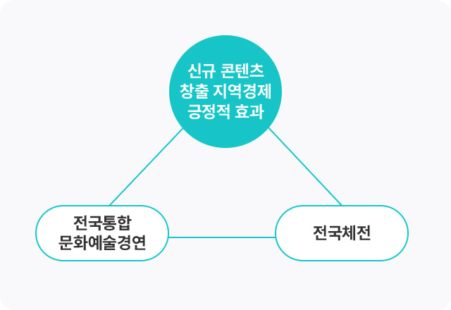 대한민국예술축전전국체전과 연계하여 개최되는 대한민국 최초의 전국종합예술대회입니다.대회 목적 전국 규모의 통합 예술경연으로 예술인들의 신규 일자리를 창출하고 청년·신인예술가 발굴과 육성으로 문화강국 기반 강화 문화예술과 체육(전국체육대회)의 융합적 시너지를 통해 관광 등 신규 콘텐츠 창출로 지역경제에 긍정적 효과 기대대회 일정기대 효과문화예술과 체육(전국체육대회)의 융합적 시너지를 통해 관광 등 신규 콘텐츠 창출로 지역 경제에 긍정적효과 기대 대한민국예술축전전국체전과 연계하여 개최되는 대한민국 최초의전국종합예술대회입니다.대회 목적 전국 규모의 통합 예술경연으로 예술인들의 신규 일자리를 창출하고 청년·신인예술가 발굴과 육성으로 문화강국 기반 강화 문화예술과 체육(전국체육대회)의 융합적 시너지를 통해 관광 등 신규 콘텐츠 창출로 지역경제에 긍정적 효과 기대대회 일정기대 효과문화예술과 체육(전국체육대회)의 융합적 시너지를 통해 관광 등 신규 콘텐츠 창출로 지역 경제에 긍정적 효과 기대