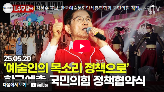 [서울=뉴스핌] 이바름 기자 = 김문수 국민의힘 대통령 후보는 20일 한국예술문화단체총연합회(예총)가 제안한 정책에 "긍정적으로 검토해서 실천하겠다"고 약속했다. 예총은 문화예술인들과의 정례 정책간담회 등을 요청했다.