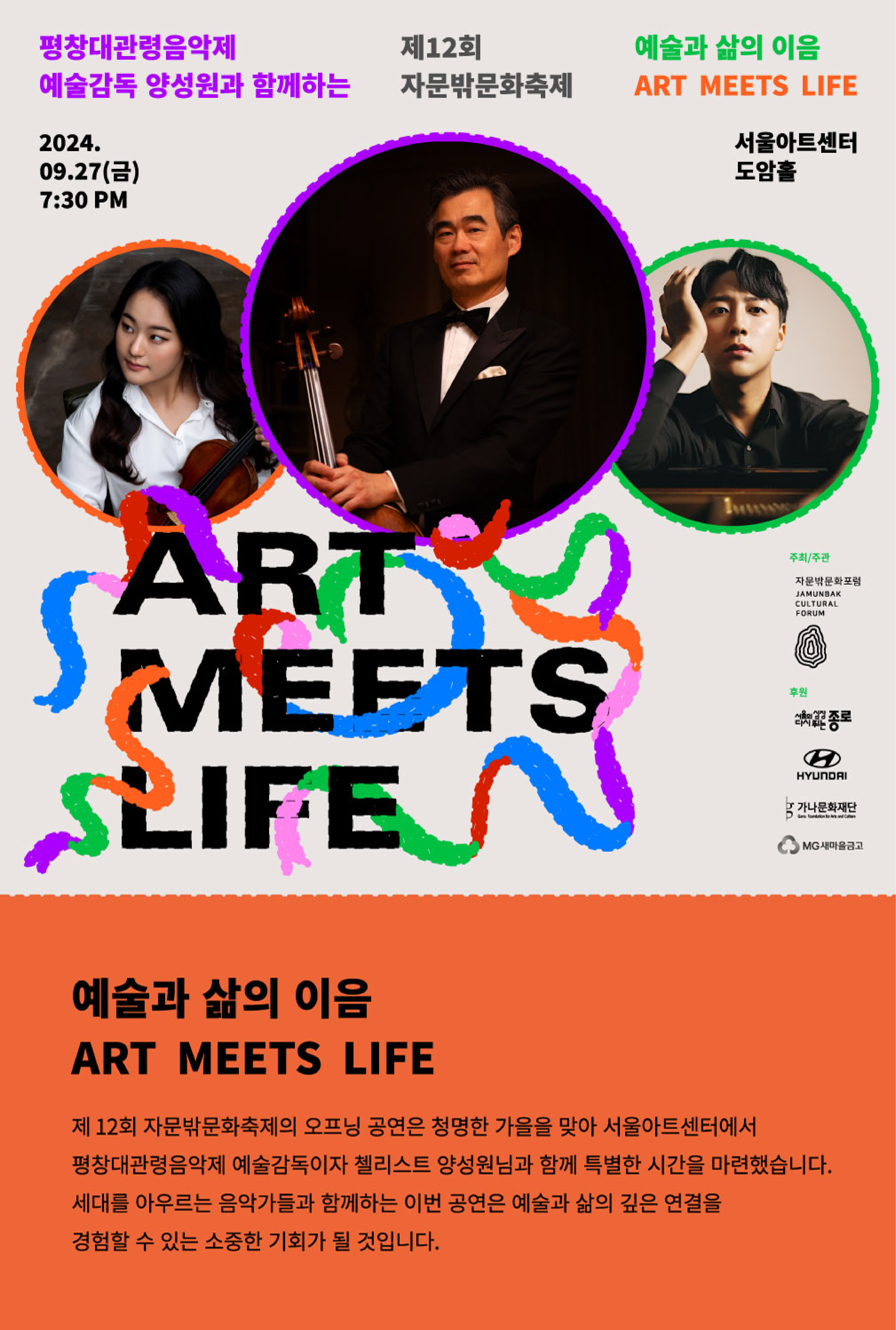 이번 자문밖문화축제는 평창대관령음악제 예술감독으로 활약하신 양성원 첼리스트의 개막공연으로 시작하여,