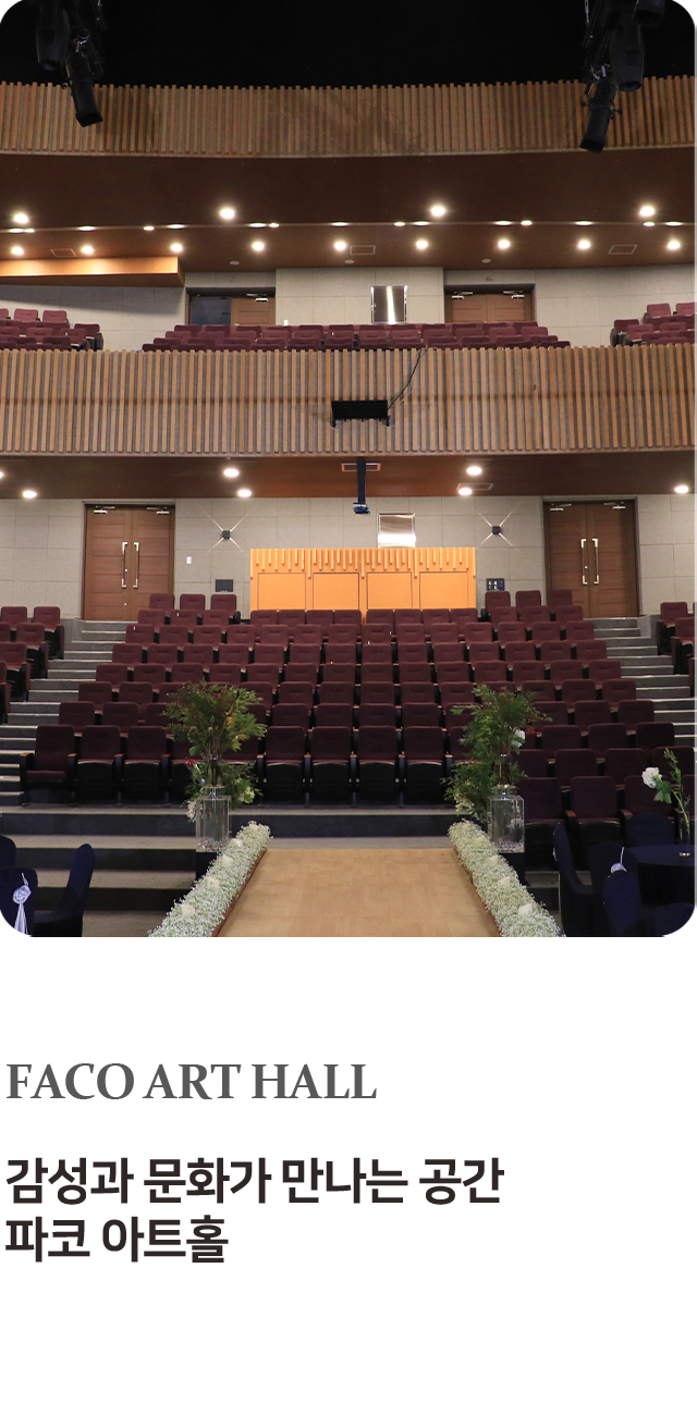음향시설과 조명 시설, 리허설 공간을 갖춰 콘서트, 클래식, 뮤지컬 뿐만 아니라 사인회, 팬미팅, 강연회, 기업행사 등 다양한 장르의 행사 연출이 가능합니다.